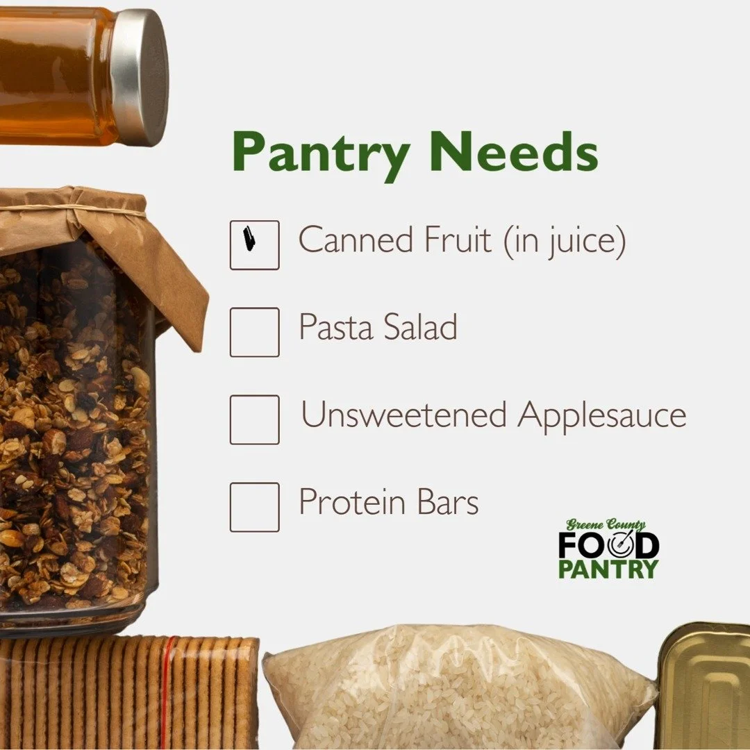 The Greene County Food Pantry is dedicated to alleviating hunger in our community by providing nutritious food to individuals and families in need.